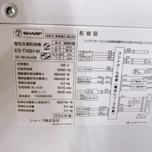 福井県越前市でSHARP 電気洗濯乾燥機 ES-TX6H-W(2024年製)を出張買取|使用感の少ない美品のため適正価格で査定しました