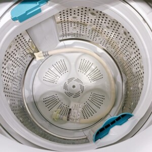 拝見した洗濯機は外装に目立つキズやへこみは見られず、全体的に清潔感のある良好な状態でした。操作パネル周辺の文字表示も鮮明で、フタやボディの変色も見受けられません。洗濯槽内部は汚れやカビの付着が少なく衛生的な印象で、糸くずフィルターや給排水ホースも揃っていました。動作確認では給水・洗い・すすぎ・脱水まで問題なく作動し、安心して再使用できるコンディションでした。