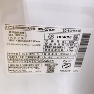 福井県小浜市でHITACHI 全自動電気洗濯機 BW-G70J(2023年製)を出張買取|使用感の少ない良好状態のため適正価格で査定しました