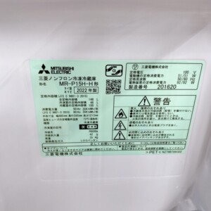 今回は福井県高浜町にお住まいの30代女性・会社員のお客様より、三菱 ノンフロン冷凍冷蔵庫 MR-P15H-H(2022年製)を出張買取にてご依頼いただきました。