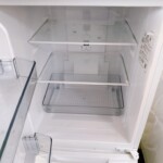 拝見した冷蔵庫は外装前面に使用に伴う細かな擦れや軽微な汚れが見られましたが、大きなヘコミや破損はありませんでした。庫内は棚板・ドアポケットともに割れや欠損がなく、ガラス棚も良好な状態を保っています。冷蔵室・冷凍室ともに清掃が行き届いており衛生的なコンディションでした。動作確認では冷却性能や庫内灯の点灯にも問題は見られず、日常使用に支障のない状態でした。