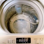 本体外観には使用に伴う細かな汚れや擦れが見受けられましたが、目立つヘコミや破損はありませんでした。操作パネルの表示・各ボタンの反応も正常で、洗濯・脱水ともに問題なく動作します。槽内は比較的きれいな状態で、給水ホースや付属パーツも揃っていることを確認しました。日常使用レベルの使用感はあるものの、まだ十分に活躍できるコンディションです。