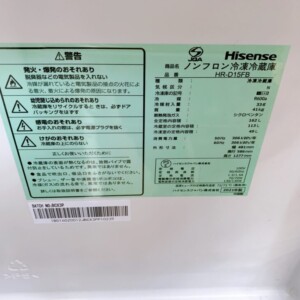 今回は江戸川区にお住まいの30代女性・会社員・単身世帯・賃貸マンションの方より、Hisense ノンフロン冷凍冷蔵庫 HR-D15FB(2021年製)を出張買取にてご依頼いただきました。
