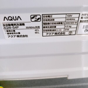 今回は大田区にお住まいの20代男性・学生・単身世帯・賃貸アパートの方より、AQUA 全自動電気洗濯機 AQW-S4Pを出張買取にてご依頼いただきました。