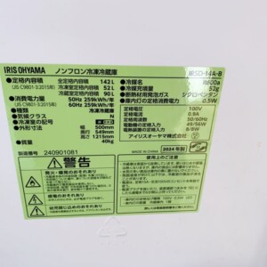 今回は中野区にお住まいの30代女性・会社員の方より、アイリスオーヤマ ノンフロン冷凍冷蔵庫 IRSD-14A-B(2024年製)を出張買取にてご依頼いただきました。