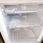 拝見した冷蔵庫はブラックカラーの外装に使用に伴う擦れやくもり跡、軽微な汚れが見受けられましたが、大きなヘコミや破損はありませんでした。庫内は棚板・ドアポケットともに破損はなく、野菜ケースや冷凍室の引き出しも揃っている状態です。庫内の冷却動作も正常で、日常使用に問題のないコンディションでした。