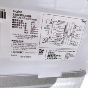 今回は目黒区にお住まいの40代女性・会社員・単身世帯・賃貸マンションにお住まいのお客様より、Haier 全自動電気洗濯機 JW-U55B(2024年製)を出張買取にてご依頼いただきました。