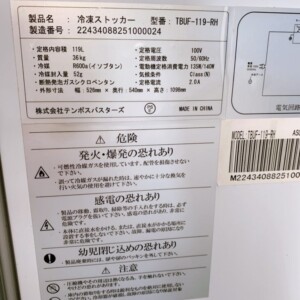東京都西東京市でテンポス 冷凍ストッカー TBUF-119-RH 119L 業務用フリーザーを出張買取しました