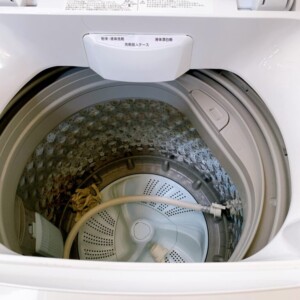本体外装は目立つキズや変色がなくきれいな状態で、フタや操作パネルの表示も良好でした。洗濯槽内部には軽微な使用感が見られる程度で、汚れの付着やカビ臭は確認されません。給水ホース・排水ホース・糸くずフィルターも揃っており、動作確認では洗い・すすぎ・脱水の各工程とも問題なく稼働しました。全体的に丁寧に使用されていたことが分かるコンディションです。