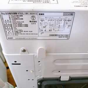 東京都府中市でニトリ 全自動洗濯機 NT60L1WH(2024年製)を出張買取 使用感が少なく良好な状態のため適正価格で査定しました