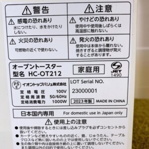 東京都港区新橋へオーブントースター HC-OT212買取 2023年製の美品状態のため適正価格で査定しました