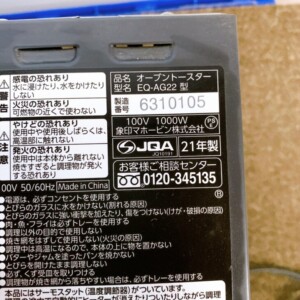 東京都港区高輪にて象印 オーブントースター EQ-AG22(2021年製) 使用感ありのため適正価格で出張買取しました