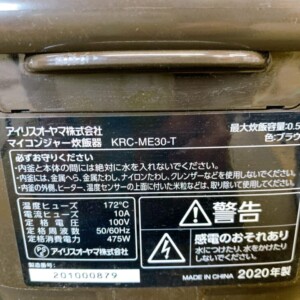 東村山市にてアイリスオーヤマ マイコンジャー炊飯器 KRC-ME30-T(2020年製)を出張買取 使用感ありのため適正価格で査定しました