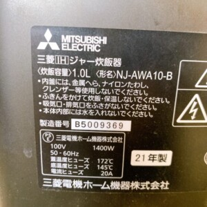 東大和市にて三菱 IHジャー炊飯器 NJ-AWA10-B(2021年製)を出張買取 使用感ありのため適正価格で査定しました