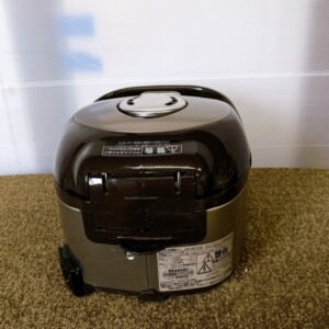 お引き取りした炊飯ジャーは、外装に使用に伴う擦れや細かな汚れが見られ、フタ周辺には経年使用によるくすみも確認できました。大きな破損や割れはありません。内釜は通常使用による細かな擦れはあるものの、コーティング剥がれや深い傷は見受けられず、IH加熱・保温機能ともに正常に動作しました。電源コードも付属しており、日常使用に問題のない状態でした。