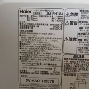 今回は目黒区祐天寺にお住まいの20代女性のお客様より、Haier(ハイアール)ヘルツフリー電子レンジ JM-FH18Jを出張買取にてご依頼いただきました。