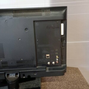 拝見したテレビは液晶表示に不具合はなく、映像の色ムラやドット抜けも確認されませんでした。フレーム部分には日常使用による軽微な擦れや細かな汚れが見られましたが、視聴に影響するダメージはありません。背面端子やHDMI入力、アンテナ接続部も問題なく、動作確認は良好でした。さらにリモコンが付属しており、チャンネル操作や入力切替も正常に行える状態でした。全体として通常使用に支障のないコンディションです。