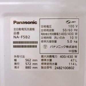 今回は中野区にお住まいの20代女性(会社員・単身世帯・賃貸マンション)より、Panasonic 全自動洗濯機 NA-F5B2(2024年製)を出張買取にてご依頼いただきました。