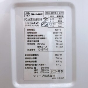 練馬区でSHARP ドラム式洗濯乾燥機 ES-S7J-WL(2024年製)を出張買取|使用感の少ない美品のため高価査定となりました