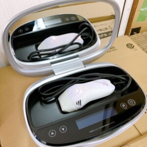 お預かりした家庭用脱毛器は目立つ傷や汚れが少なく、非常にきれいな状態でした。本体パネルや照射ハンドピースにも使用感は少なく、動作確認でも問題なく起動・照射できました。付属の電源コードや収納ケースも揃っており、保管状態の良さがうかがえるお品でした。