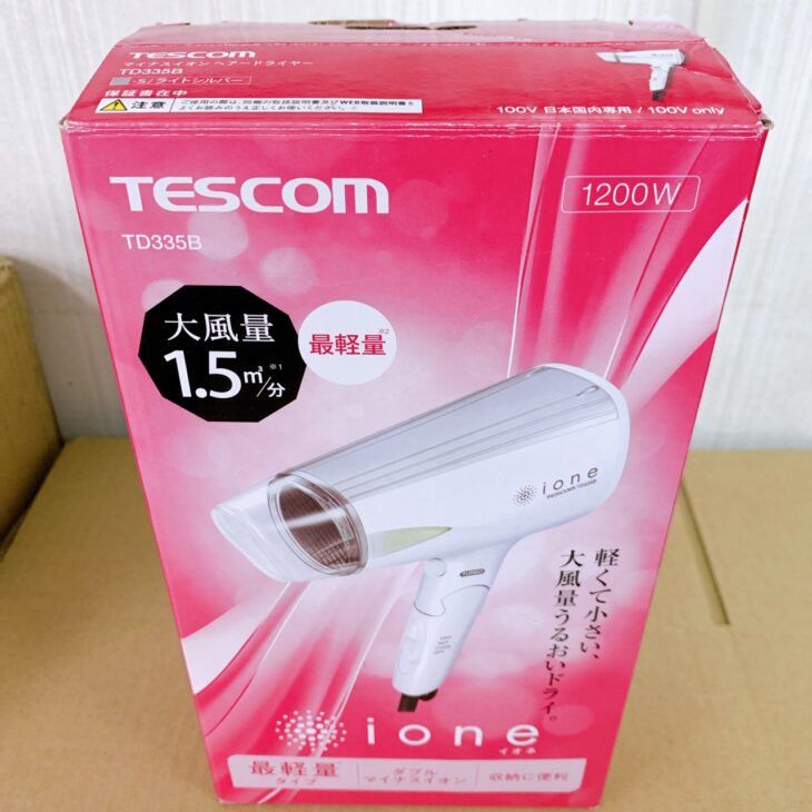今回は西東京市にお住まいの20代女性のお客様より、TESCOM マイナスイオンヘアードライヤー TD335Bを出張買取にてご依頼いただきました。