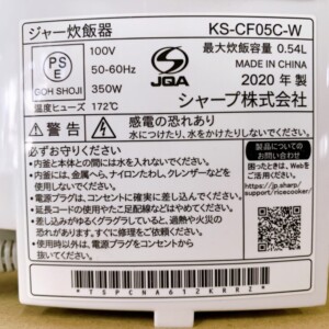 今回は立川市にお住まいの40代女性より、SHARP ジャー炊飯器 KS-CF05C-W(2020年製)を出張買取にてご依頼いただきました。