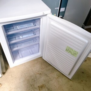 拝見した冷凍庫は外装に目立つ傷や変色はなく、全体的に清潔感のある良好な状態でした。庫内の引き出しケースも割れや欠けがなく、使用感は少なめです。冷却動作も正常で、異音や霜付きも見られませんでした。86Lのコンパクト冷凍庫は、冷凍食品の保存量を増やしたい家庭や業務用途で需要の高いモデルです。