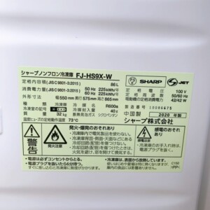 東京都中央区日本橋へ シャープ FJ-HS9X-W 冷凍庫(2020年製)美品のため高価買取いたしました