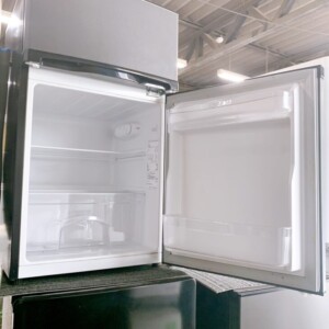 お引き取りした冷凍冷蔵庫は外装に目立つキズやへこみがなく、庫内も清潔感のある良好な状態でした。棚板・ケース・ドアポケットも揃っており、破損や変色は見られません。冷却動作も正常で、コンパクトながら冷蔵・冷凍ともにしっかり冷えることを確認しました。