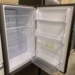 本体外観には使用に伴うわずかな擦れ傷が見受けられましたが、大きく目立つ凹みや塗装剥がれはなく全体として丁寧に使用されていた印象です。庫内は清掃が行き届いており、棚板・ドアポケット・ケース類も揃っており清潔感のある良好なコンディションを保っています。冷却動作も確認でき、冷蔵・冷凍ともに安定した冷えを維持していました。