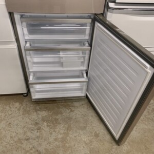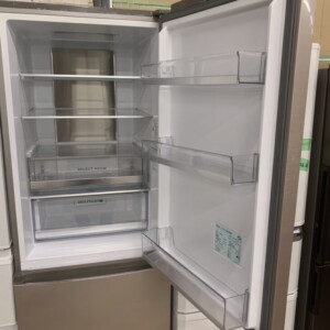 お引き取りした冷蔵庫は外観に目立つ傷やへこみが見られず、全体的に使用感が少ない非常にきれいな状態でした。庫内も清潔に保たれており、棚板・ドアポケット・野菜ケース・製氷トレーなどの付属品はすべて揃っています。冷却動作や温度調整も正常で、安心して再販可能なコンディションでした。