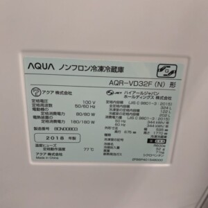 今回は三鷹市にお住まいの50代女性より、AQUA ノンフロン冷凍冷蔵庫 AQR-VD32F(2018年製)を出張買取にてご依頼いただきました。