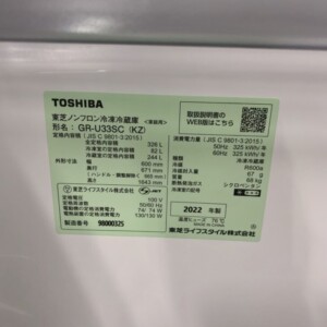 今回は多摩市にお住まいの30代男性より、東芝 ノンフロン冷凍冷蔵庫 GR-U33SC(2022年製)を出張買取にてご依頼いただきました。