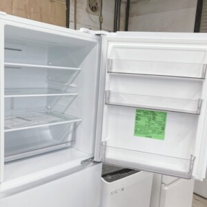 拝見した冷蔵庫は、外装に目立つキズやへこみがなく使用感の少ない非常にきれいな状態でした。庫内の棚板やドアポケットは透明感があり、食品汚れやニオイの付着も見られません。冷凍室の引き出しやパッキン部分も良好な状態で、冷却動作も正常に確認できました。庫内容量235Lの3ドアタイプで、冷凍容量が大きく日常使いしやすい設計が特徴のモデルです。