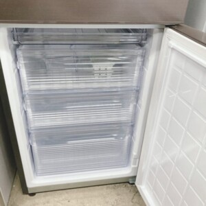 お引き取りしたシャープ製280L冷凍冷蔵庫は、ブラウン系の落ち着いた外観で、目立つへこみや大きな傷は見受けられないきれいな状態でした。庫内の棚板やドアポケットも割れや欠けはなく、冷蔵室・冷凍室ともに清潔感が保たれていました。動作確認では冷却機能も正常で、異音などもありません。2023年製と比較的新しいモデルで、容量は全定格内容積280L(冷蔵室155L/冷凍室125L)とファミリー層にも需要の高いサイズです。