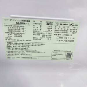 東京都東久留米市へ出張買取 SHARP ノンフロン冷凍冷蔵庫 SJ-PD28J-T 2023年製 美品のため高価査定