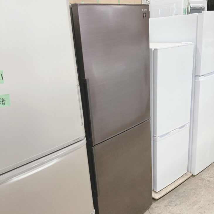 お引き取りしたシャープ製280L冷凍冷蔵庫は、ブラウン系の落ち着いた外観で、目立つへこみや大きな傷は見受けられないきれいな状態でした。庫内の棚板やドアポケットも割れや欠けはなく、冷蔵室・冷凍室ともに清潔感が保たれていました。動作確認では冷却機能も正常で、異音などもありません。2023年製と比較的新しいモデルで、容量は全定格内容積280L(冷蔵室155L/冷凍室125L)とファミリー層にも需要の高いサイズです。