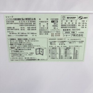 今回は世田谷区成城にお住まいの50代ご夫婦(自営業・夫婦世帯・持ち家マンション)より、SHARP ノンフロン冷凍冷蔵庫 SJ-W357J-N(2022年製)を出張買取にてご依頼いただきました。