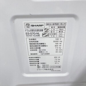 東京都目黒区自由が丘へ出張買取 SHARP ES-S7G-NL 2022年製 ドラム式洗濯乾燥機 きれいな状態のため高価査定しました