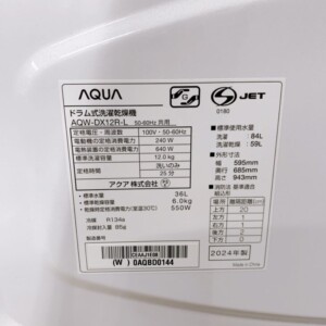今回は大田区田園調布にお住まいの50代男性(会社員・夫婦世帯・持ち家(一戸建て))より、AQUA ドラム式洗濯乾燥機 AQW-DX12R-L(2024年製)を出張買取にてご依頼いただきました。