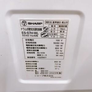 今回は板橋区にお住まいの30代女性(会社員・単身・賃貸(マンション))より、SHARP ドラム式電気洗濯乾燥機 ES-S7H-WL(2023年製)を出張買取にてご依頼いただきました。