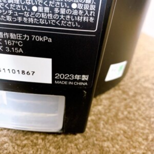 お預かりしたPMPC-MA2-Bは2023年製と高年式で、本体外装に目立つ大きな傷やへこみはなく、全体的にきれいな状態でした。側面にわずかな擦り傷が見受けられましたが、使用に支障はありません。内鍋のコーティングも剥がれや焦げ付きはほとんどなく、圧力表示ピンやパッキンの状態も良好でした。電源を入れての動作確認でも、液晶表示・ボタン操作ともに問題なく、正常に加圧動作を確認できました。付属品は電源コードと内鍋が揃っている状態でした。