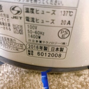 ご依頼品は炊飯容量1.0L(5.5合炊き)のIHタイプ炊飯器です。外装には全体的に擦れや細かな傷、上部にくすみ汚れが見受けられました。内ぶた部分には使用に伴う水垢や細かな汚れがありましたが、内釜は大きなコーティング剥がれはなく比較的良好な状態でした。通電確認では液晶表示・各種ボタン操作・炊飯機能ともに正常に作動。電源コードも問題なく使用できる状態でした。製造ラベルより2016年製であることを確認しております。