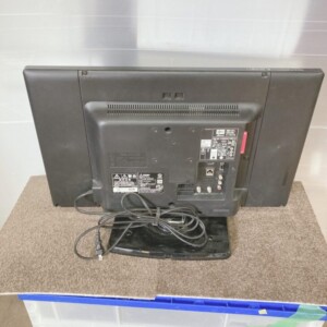 お預かりしたLCD-24LB7は24V型のコンパクトモデルで、寝室やワンルームにも設置しやすいサイズ感が特長です。画面部分には目立つ傷や割れはなく、表示も正常でした。一方で、背面やスタンド部分には経年による細かな擦れやホコリの付着が見られました。リモコンは欠品しており、本体と電源コードのみの状態でしたが、地デジ受信・HDMI入力の動作確認は問題ありませんでした。