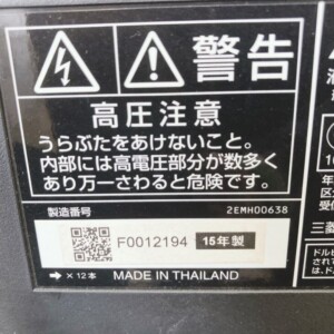 事前に型番と年式をお伝えいただき、概算の査定目安をご案内。日程調整のうえ、千代田区内の賃貸マンションへ訪問しました。室内で通電確認と各入力端子の動作チェックを行い、外観コンディションを確認。2015年製と年式は経過しているものの、24型クラスはセカンドテレビ需要が一定数あるため、再販可能と判断いたしました。
