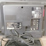 お預かりしたLCD-24LB7は24V型のコンパクトモデルで、寝室やワンルームにも設置しやすいサイズ感が特長です。画面部分には目立つ傷や割れはなく、表示も正常でした。一方で、背面やスタンド部分には経年による細かな擦れやホコリの付着が見られました。リモコンは欠品しており、本体と電源コードのみの状態でしたが、地デジ受信・HDMI入力の動作確認は問題ありませんでした。