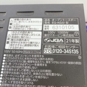 東京都世田谷区経堂へ出張買取 象印 オーブントースター EQ-AG22 2021年製 使用感ありのため適正価格で査定しました