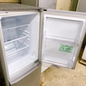 拝見したお品物は、全体的に目立つ傷やへこみの少ないきれいな状態でした。外装のシルバーカラーもくすみが少なく、扉の開閉も良好です。庫内の棚板やドアポケット、冷凍室の引き出しも割れやヒビはなく、内部も清掃が行き届いている印象でした。146L(冷蔵100L/冷凍46L)の2ドアタイプで、一人暮らしに適した容量です。動作確認では冷却も問題なく、年式相応ながらコンディションは良好でした。
