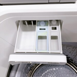 拝見したお品物は、標準洗濯容量8.0kg・乾燥容量4.5kgの縦型洗濯乾燥機です。外装には目立つ大きな傷やへこみはなく、全体的にきれいな状態でした。操作パネルの表示も正常で、各ボタンの反応も良好です。洗剤投入口や糸くずフィルター部分も破損はなく、ドラム内も強いサビや大きな汚れは見受けられませんでした。使用に伴うわずかなスレはあるものの、2022年製と比較的新しく、中古市場でも需要の高いモデルです。