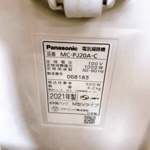 今回は江戸川区にお住まいの60代男性(自営業・高齢世帯)より、Panasonic 電気掃除機 MC-PJ20A-C(2021年製)を出張買取にてご依頼いただきました。